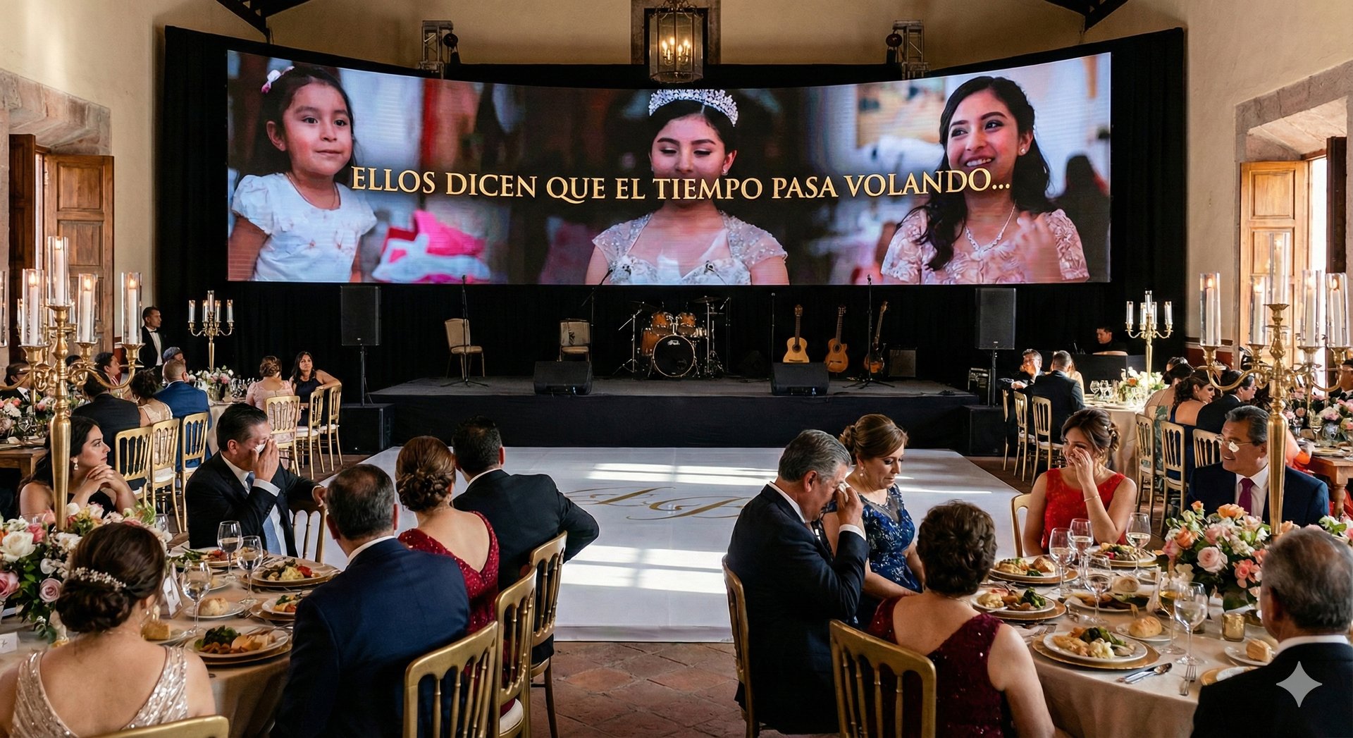 Ideal Para: Bodas (para proyectar antes de la fiesta), XV Años, cumpleaños importantes, graduaciones.